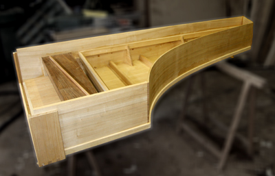 De laatste foto laat de bouw zien van een nieuw Italiaans klavecimbel voor Jelte Hulzebos. Klavecimbelbouwer Herwil van Gelder uit Warfhuizen bouwt het instrument naar een voorbeeld van Giusti.