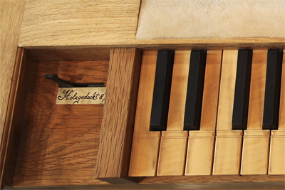 Het klavecimbel is gemaakt door Frans Driesens, Groningen naar J.C. Goujon 1749, het origineel bevindt zich in het Musée de la musique te Parijs.